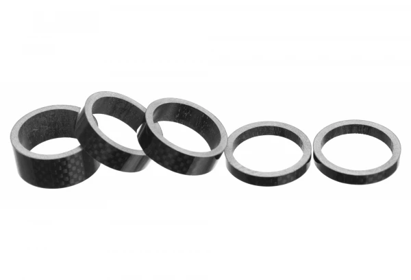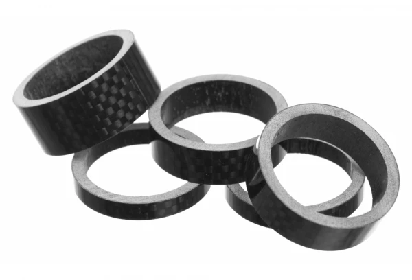 Kit d’entretoises de direction Parts 8.3 en carbon, composé de 5 pièces de 5,10 et 15 mm d’épaisseur.