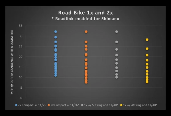 - Le RoadLink est optimisé pour la géométrie des dérailleurs route Shimano 10 et 11 vitesses, mais fonctionne également très bien avec les dérailleurs route à 9 vitesses. Les dérailleurs Sram traditionnels fonctionnent, mais pas les dérailleurs arrière X-Horizon spécifiques 1x. Les dérailleurs arrière Campagnolo fonctionnent mieux avec des cassettes jusqu’à 11-36 dents.