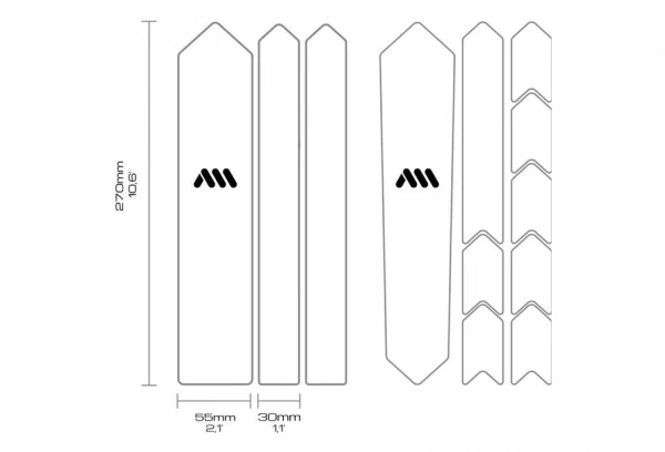 - 12 pièces pour un système de protection universel : 1 grande pièce pour le tube diagonal, 2 flèches longues pour la fourche ou les haubans, 1 grande pièce pour le tube supérieur ou le tube de selle, 8 pièces fléchées pour la protection contre les frottements du câble et les zones où le pneu s’adapte serré avec le cadre.
