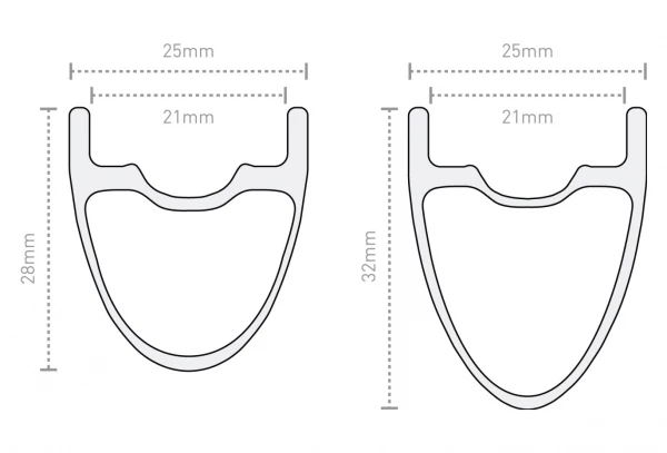 - Largeur du fond de jante Tubeless : 25 mm.