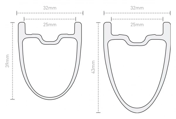 - Largeur externe de la jante : 32 mm (Avant & Arrière).