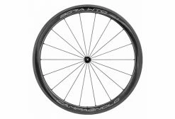Le rayonnage G3 avec doublement des rayons côté disc sur la roue avant garantit un freinage équilibré et sûr en toutes circonstances. La fabrication de la roue complète, conçue en pensant chaque composant comme élément d’un système, fait de la roue Campagnolo un fidèle allié pour le cycliste lors de ses plus longues sorties, en cyclosportives ou autres aventures des plus exigeantes.