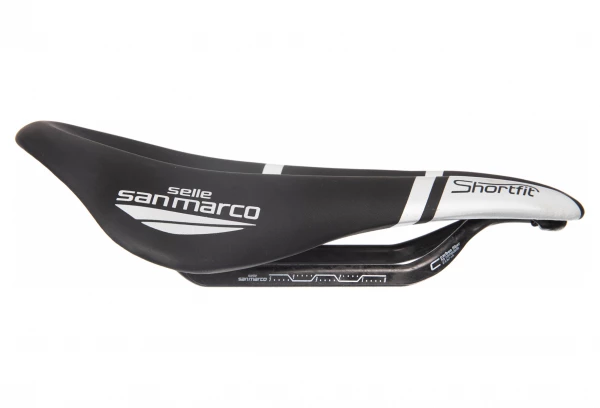 La selle SELLE SAN MARCO ShortFit Dynamic a été créée pour répondre aux besoins des cyclistes très souples du bassin, qui font pivoter leur buste vers l’avant, dans une position proche du guidon. La forme ergonomique de cette selle assure ainsi le support parfait à l’arrière grâce à une assise courte (250 mm) et large (144 mm), tout en soulageant la pression sur le périnée et à l’avant grâce à un canal central ajouré.
