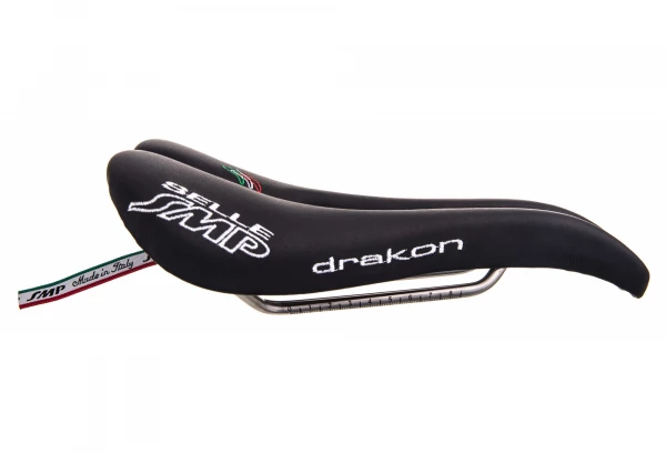 Drakon est la selle idéale pour les activités sportives et les promenades à vélo. Elle utilise la même structure que le modèle Forma, associée à un rembourrage moyen. Elle est revêtue de cuir véritable pour les versions de couleur noire et Micro fibre de Lorica pour les versions colorées. Elle a des caractéristiques «allaround» excellentes, et est particulièrement adaptée aux conformations de bassins moyennes larges. Le modèle Drakon est rembourré en élastomère aux points d’appui des tubérosités ischiatiques et des fessiers. Les caractéristiques brevetées de Selle SMP à savoir le canal central libre, la forme originale de la partie antérieure et le relèvement de la partie arrière, apportent à ces modèles une touche aérodynamique intéressante. Le modèle Drakon représente la solution intermédiaire parmi les modèles Dynamic et Lite 209 est particulièrement adaptée aux personnes avec un bassin moyen large.